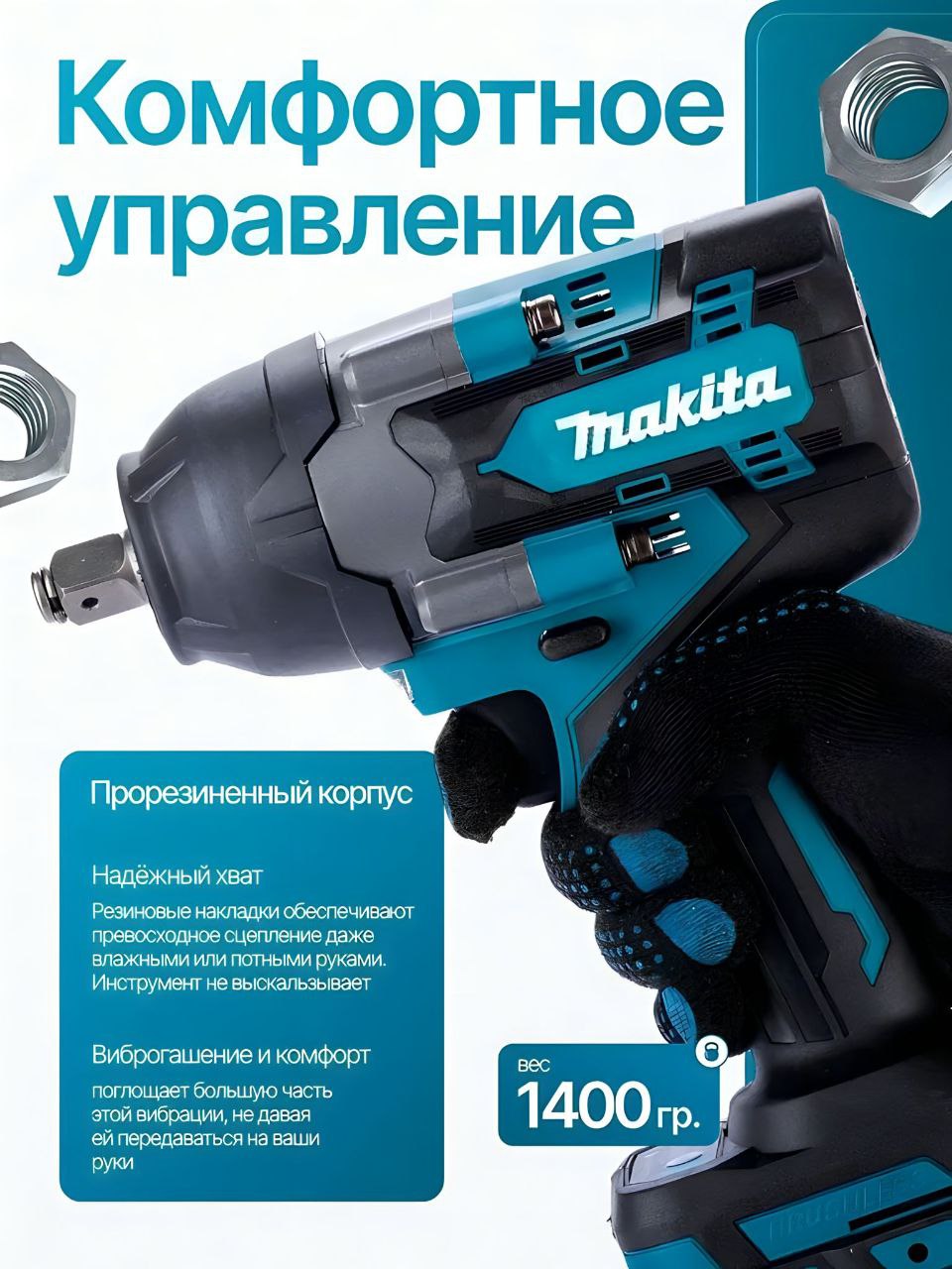 Этот мощный инструмент рассчитан на самые сложные задачи и позволит значительно сократить время на сборку и разборку сложных конструкций. Гайковерт оборудован двумя емкими аккумуляторами по 10 000 мАч, что обеспечивает долговременную работу без необходимости частой подзарядки.