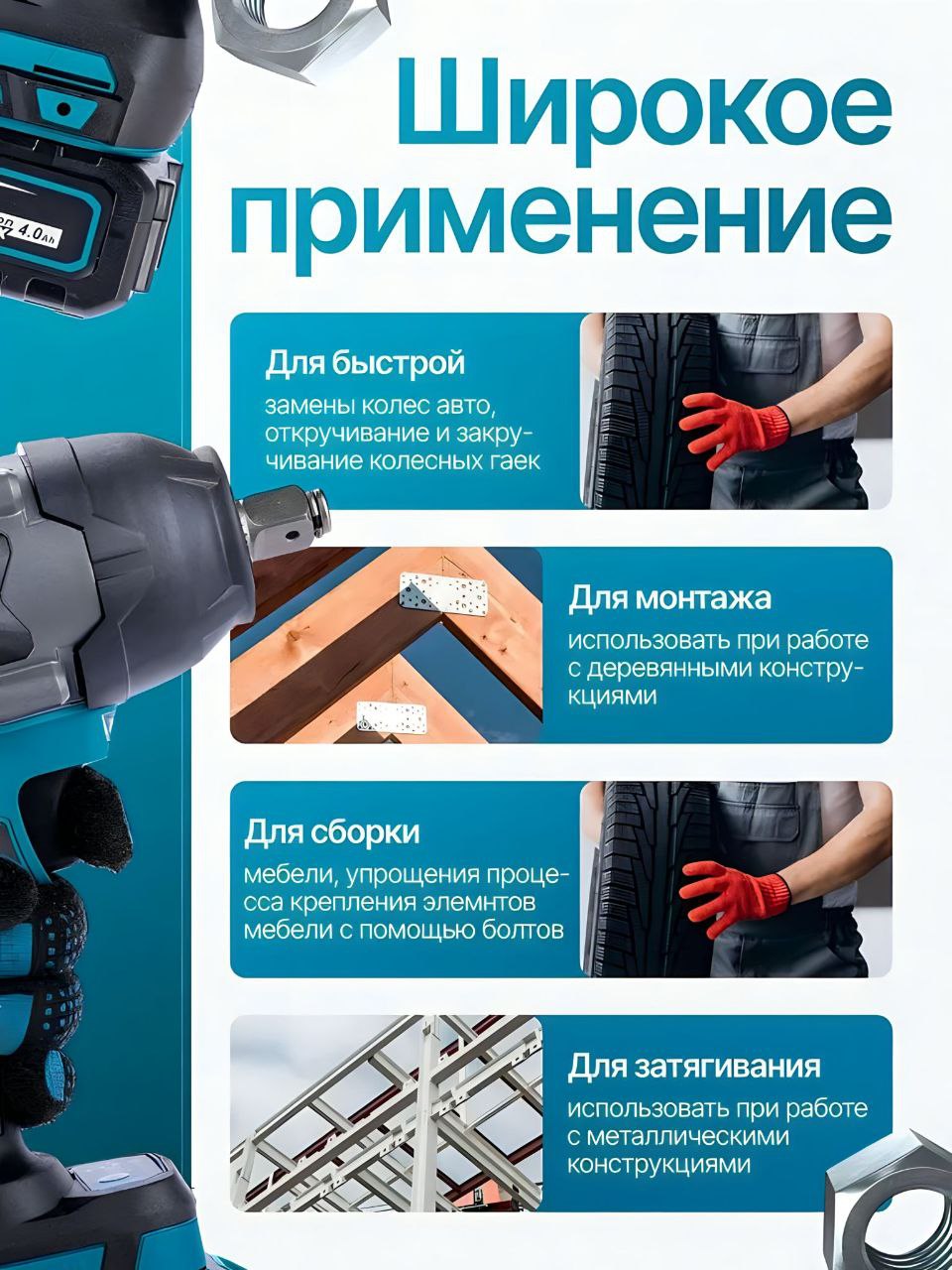 Это отличный вариант, как для работы на стройплощадке, так и для домашних ремонтов, где требуется высокая точность и мощность инструмента. Если вам нужен надежный и мощный гаечный ключ для быстрой и качественной работы, этот гайковерт аккумуляторный бесщеточный станет вашим верным союзником в выполнении любых трудоемких задач.
