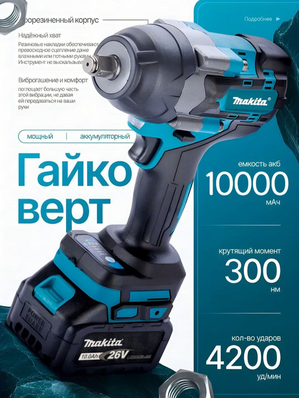 Аккумуляторный ударный бесщеточный гайковерт 26В, обладающий внушительным крутящим моментом 300 Нм, станет незаменимым помощником в любом строительстве и ремонте.