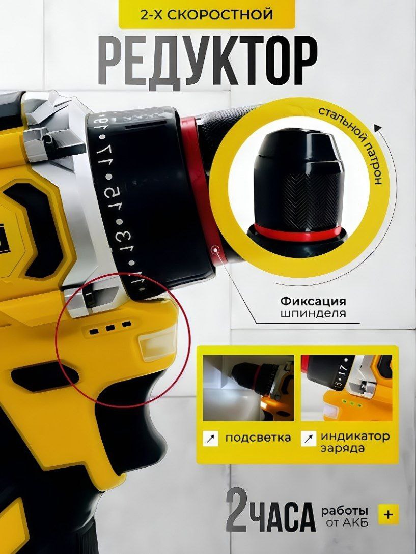 Бесщеточный двигатель обеспечивает длительный срок службы и высокую производительность, а металлический двухскоростной редуктор гарантирует надежность и долговечность.